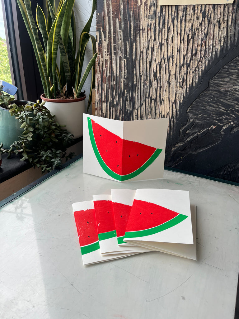 Hand printed on white card with envelope